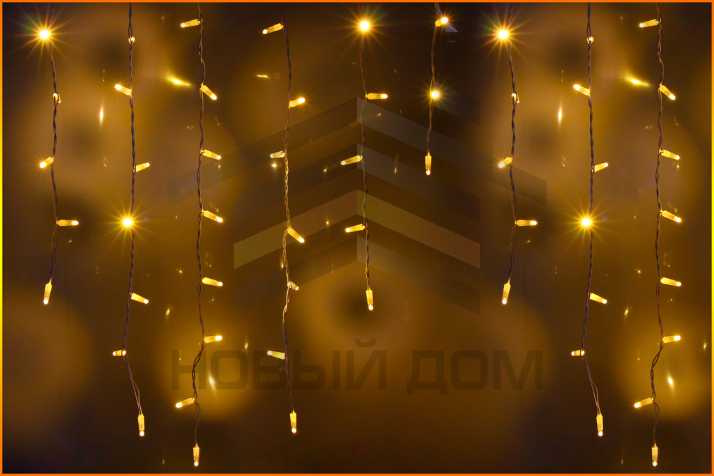 Бахрома 3x0.9 для уличного освещения (IP65), усиленная, С мерцанием, Желтый, ПВХ