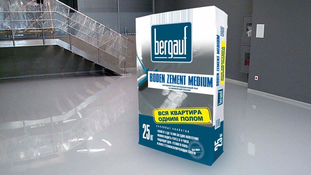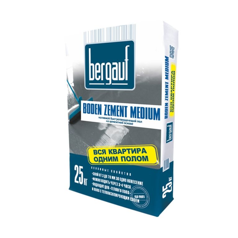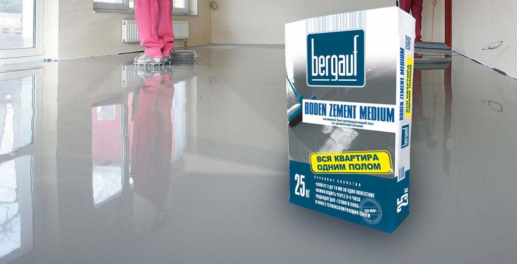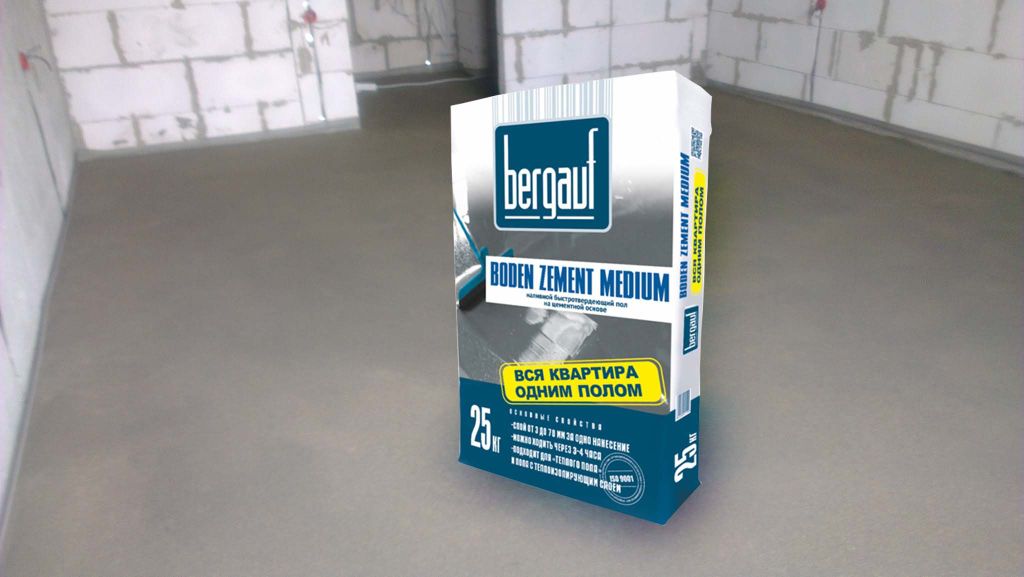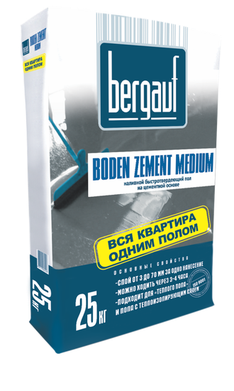 «Бергауф Boden Zement Medium» наносится однократно слоем от 3 до 70 мм. Применяется в основном для внутренних работ. Бергауф Boden Zement Medium обладает влагостойкостью.