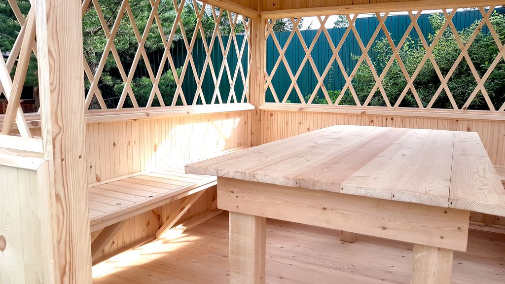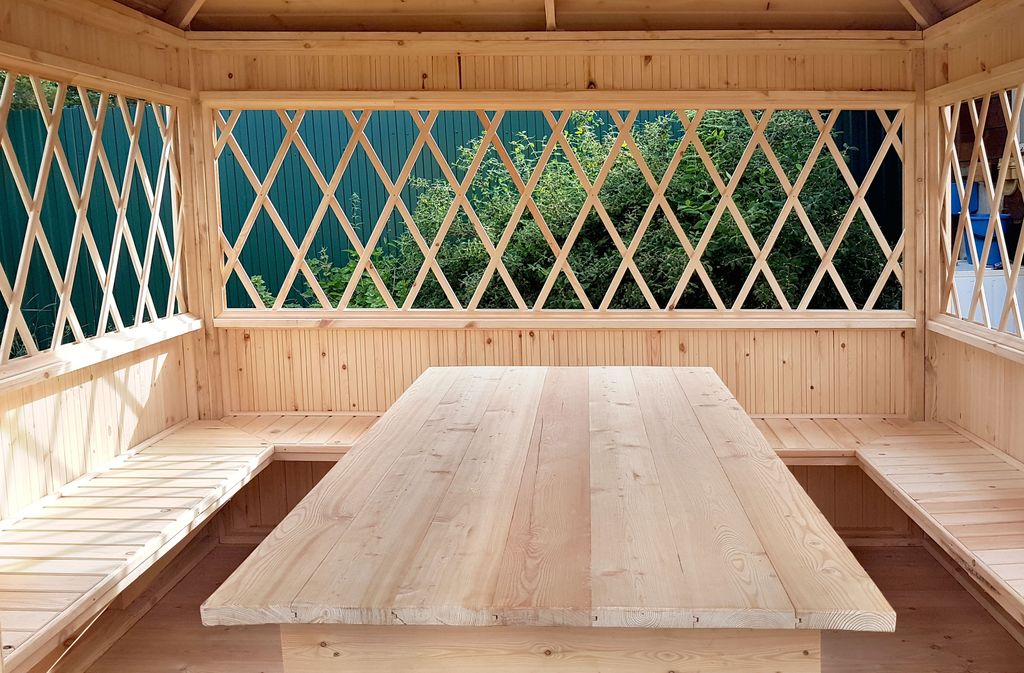 Элементы из которых изготавливается беседка проходят предварительную обработку, за счет этого продлевается срок службы элементов.