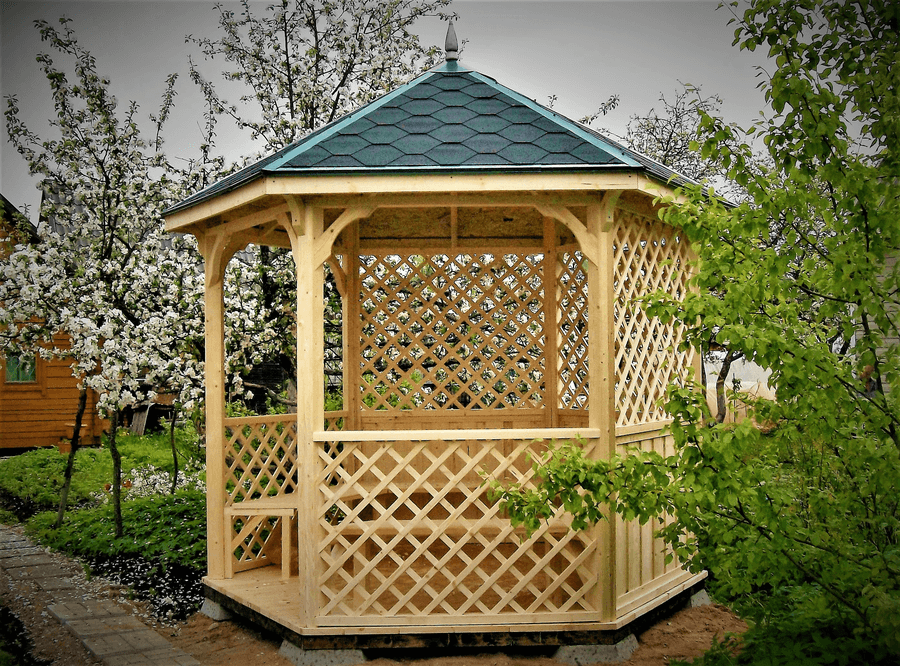 Любой загородный участок преобразится благодаря шестигранной форме и компактным размерам беседки.