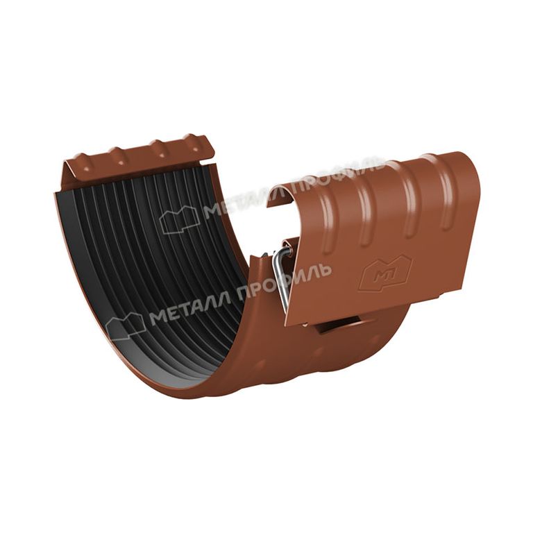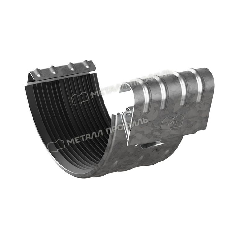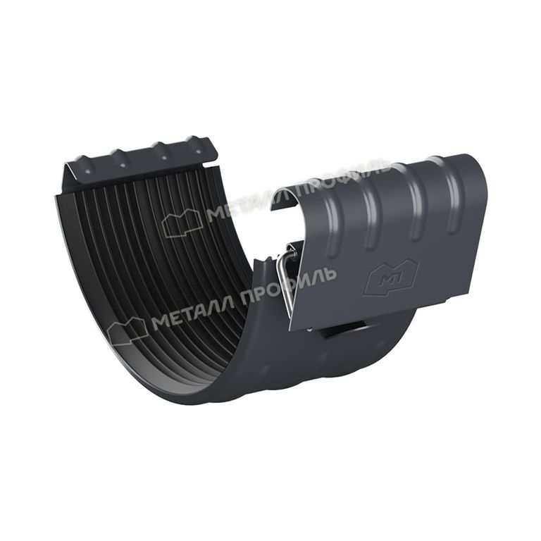 Соединитель желоба D125 GrandSystem (Металл Профиль) (сталь 0,6 мм) - один из комплектующих водосточной системы, предназначенный для соединения двух желобов, желоба и угла (внешнего или внутреннего). Предотвращает протекание воды в местах соединений водосточной системы. При соединении желобов их вставляют друг в друга с нахлестом в 25-30 мм. На месте стыка необходимо устанавливать соединитель желоба с ЭПДМ прокладкой.