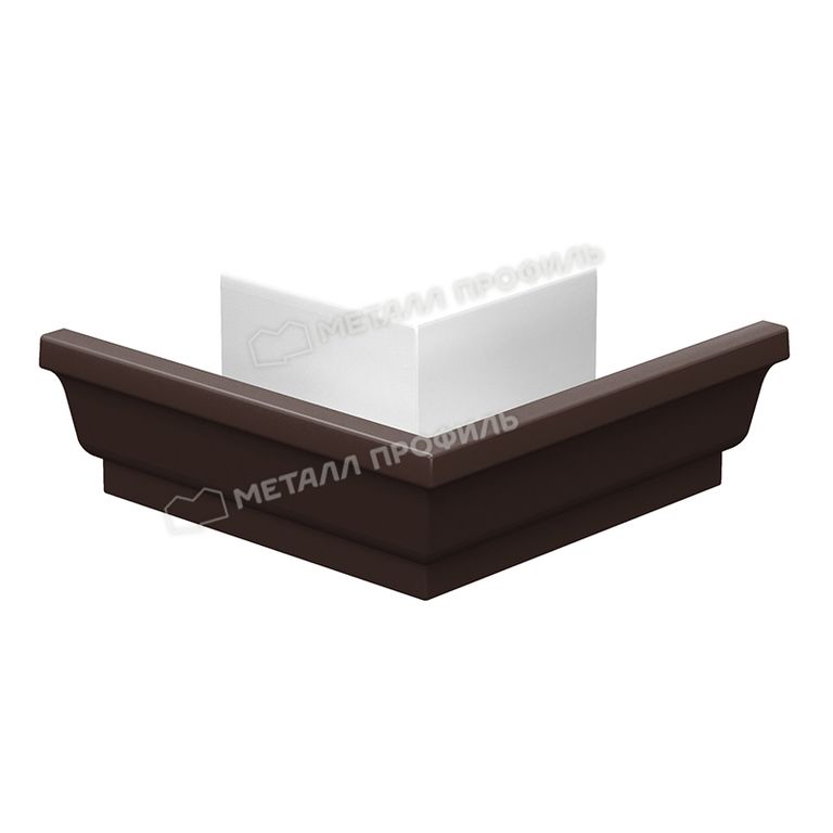 Угол желоба наружный 120х86 МОДЕРН (Металл Профиль) - составная часть водосточной системы, которая необходима для надежного сопряжения двух желобов между собой на углах карниза кровли и изменения направления потока воды. Для надежной фиксации и герметизации рекомендуем использовать герметик.