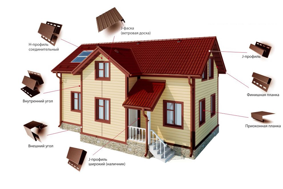 Визуально элемент выглядит, как вертикальная планка, имеющая форму стрелки. Внешняя сторона планки имеет прямоугольный угол 90°. По обеим сторонам панели имеются пазы, в которые вставляется сайдинг. Элемент надежно удерживает панели сайдинга, делая в общем конструкцию еще прочнее.
