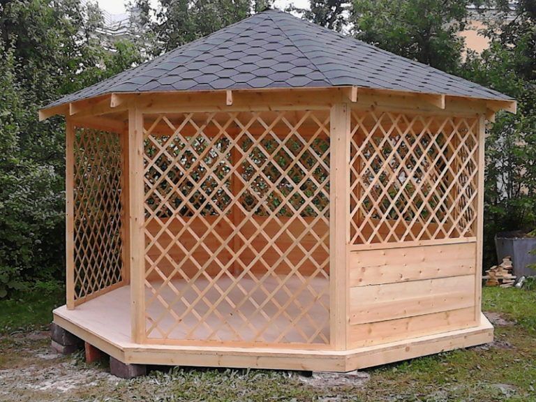 Любой загородный участок преобразится благодаря такой форме и компактным размерам беседки.