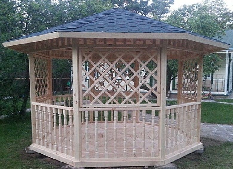 Любой загородный участок преобразится благодаря такой форме и компактным размерам беседки.